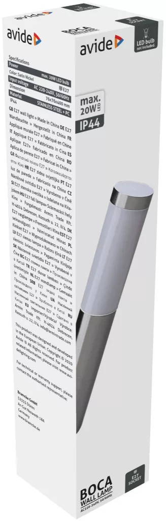 Avide kültéri fali lámpa Boca 1xE27 IP44 Szatén Nikkel