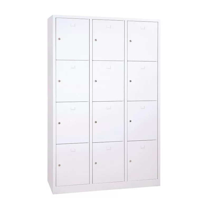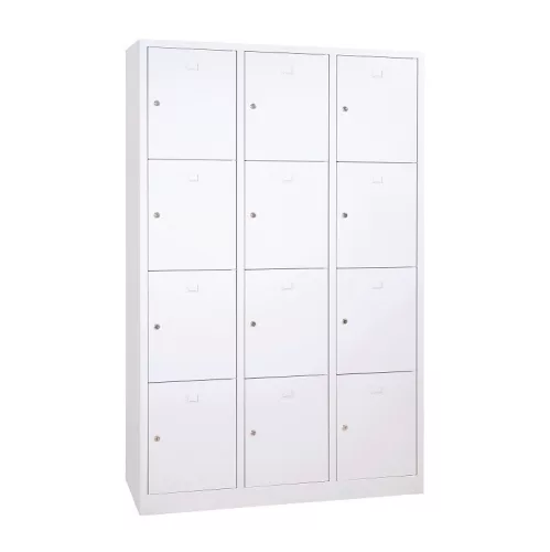Iskolai fém öltözőszekrény, 12 rekeszes (3×4), 1900mmx1190mmx450mm, Szürke/szürke