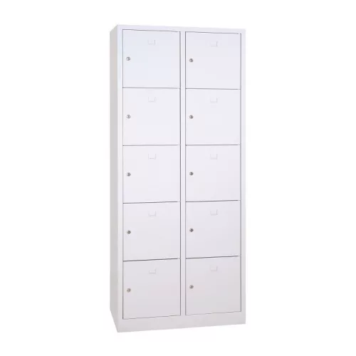 Iskolai fém öltözőszekrény, 10 rekeszes (2×5), központi ajtóval, 1900mmx800mmx450mm, Szürke/szürke