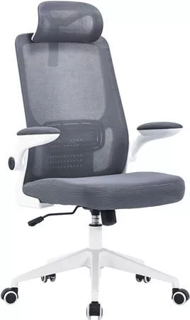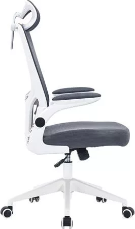 Irodai forgószék, szürke hálós háttámla, szürke szövetborítás, fehér műanyag váz és lábkererszt, "Mulberry"