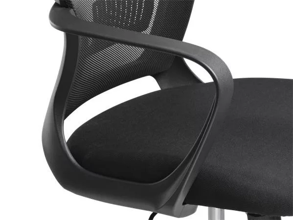 Irodai szék, karfás, fekete szövetborítás, feszített hálós háttámla, fekete lábkereszt, MAYAH "Vega", fekete