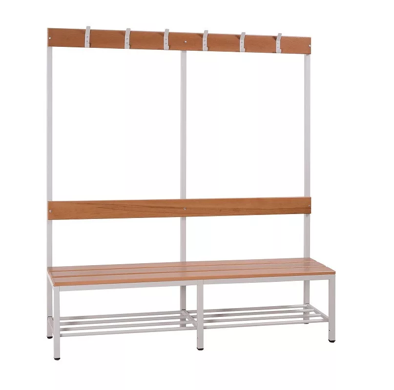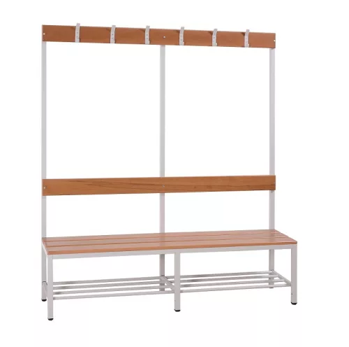 Öltözőpad fenyőfa lécezéssel, fogas állvánnyal egybeépítve, egy oldalas, cipő tartó ráccsal, Szürke/bükk, 400mmx1200mmx400mm, Szürke/bükk