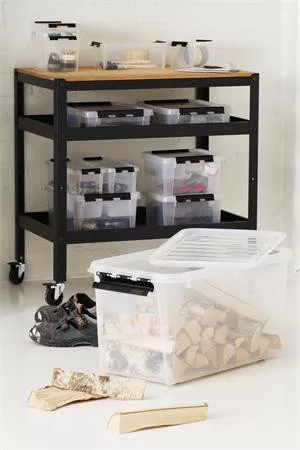 Műanyag tárolódoboz, 8 liter, fekete fogantyúkkal, SMARTSTORE "Classic 14", átlátszó