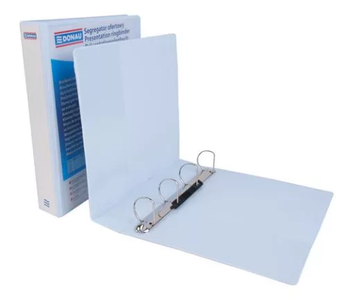 Ha iratrendezés, akkor DONAU! Termék tulajdonságok: -panorámás gyűrűskönyv -63 mm gerincvastagság -40 mm átmérőjű, 4 "D" gyűrűs szerkezet -mindkét oldalán ragasztott és a széleken hegesztett PP fólia borítással a buborékmentes és minőségi megjelenés érdekében -2 átlátszó külső zseb a felcímkézéshez, személyre szabáshoz -2 belső zseb jegyzeteknek -tartós PP borítás kívül és belül