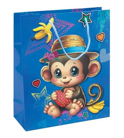 Ajándéktáska, zsinórfüles, 25x30x10 cm, DONAU "Home", vegyes gyermek minta
