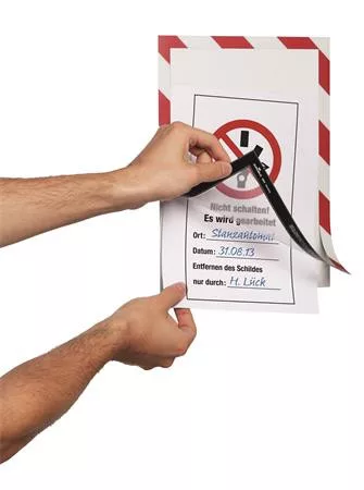 Infokeret, A4, öntapadó háttal, DURABLE "DURAFRAME SECURITY", piros-fehér