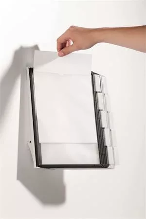 Teljes bemutatótáblatartó szett, fali felhasználásra. -műanyag -álló tájolás -10 db A4 méretű SHERPA® panellel (5 db szürke - 5 db fekete) -stabil csúszásmentes fali állvány -polipropilén panelek színes kerettel és tükröződésmentes, fénymásolható fóliával -az üres betétlapokkal ellátott indexfülek révén könnyen feliratozható -a panelek egyszerűen és gyorsan cserélhetőek -5 év garancia -külső méret: 530x325x280 mm (szé x ma x ho) Itt megtekinthető és letölthető a termékadatlap. Itt megtekinthető és letölthető az összeszerelési útmutató. Itt megtekinthető és letölthető a környezetvédelmi adatlap. Gyártó/első EU forgalmazó elérhetősége:  DURABLE Hunke & Jochheim GmbH & Co. KG Westfalenstrasse 77-79, D- 58636 Iserlohn, Germany info@durable.de www.durable.de
