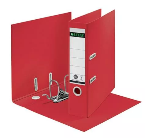 Iratrendező, 80 mm, A4, karton, újrahasznosított, LEITZ "180 Recycle", piros