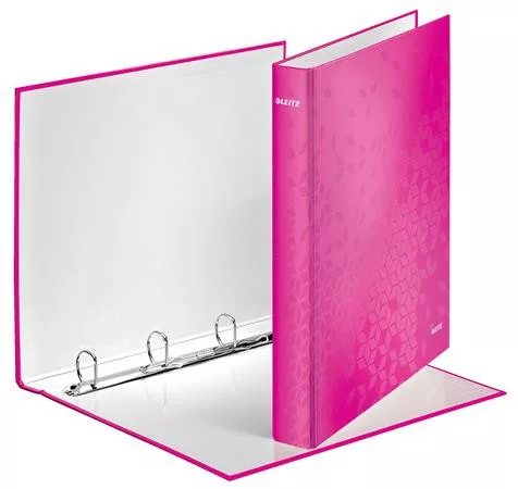 Gyűrűs könyv, 4 gyűrű, D alakú, 40 mm, A4 Maxi, karton, LEITZ "Wow", rózsaszín