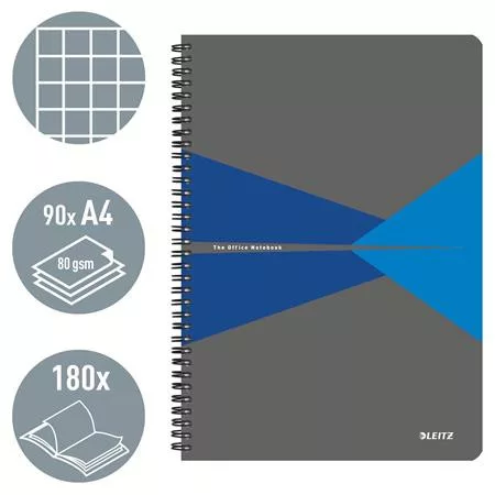 Spirálfüzet, A4, kockás, 90 lap, PP borító, LEITZ "Office", szürke-kék