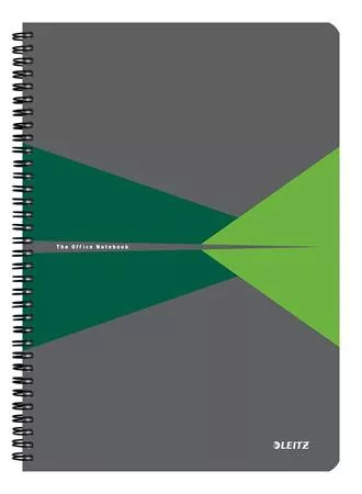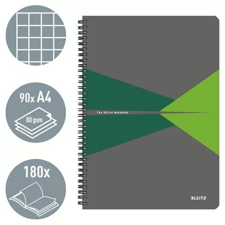 Spirálfüzet, A4, kockás, 90 lap, PP borító, LEITZ "Office", szürke-zöld