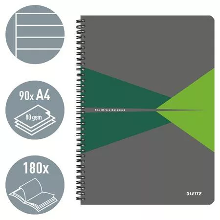 Spirálfüzet, A4, vonalas, 90 lap, PP borító, LEITZ "Office", szürke-zöld