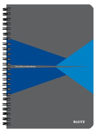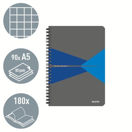 Spirálfüzet, A5, kockás, 90 lap, PP borító, LEITZ "Office", szürke-kék