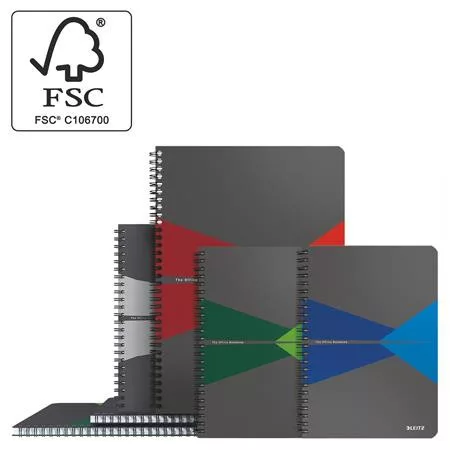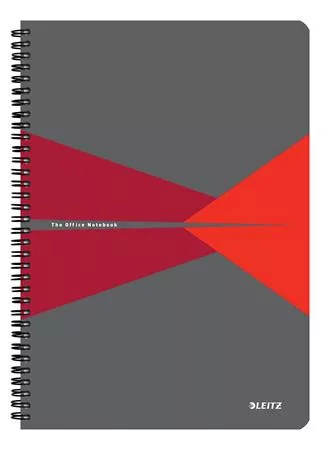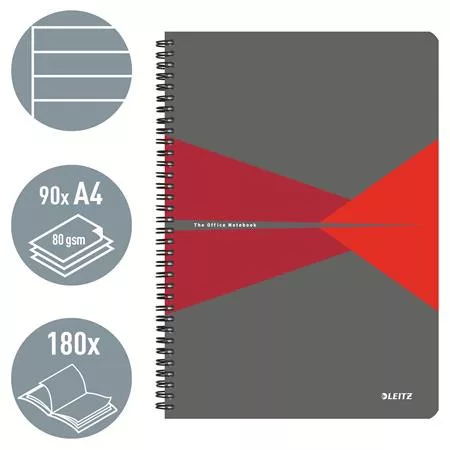 Spirálfüzet, A4, vonalas, 90 lap, laminált karton borító, LEITZ "Office", szürke-piros