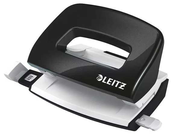 Lyukasztó, kétlyukú, 10 lap, fém, mini, LEITZ "Nexxt Wow", fekete