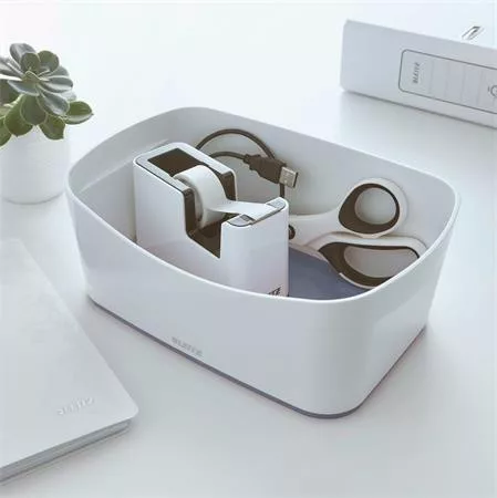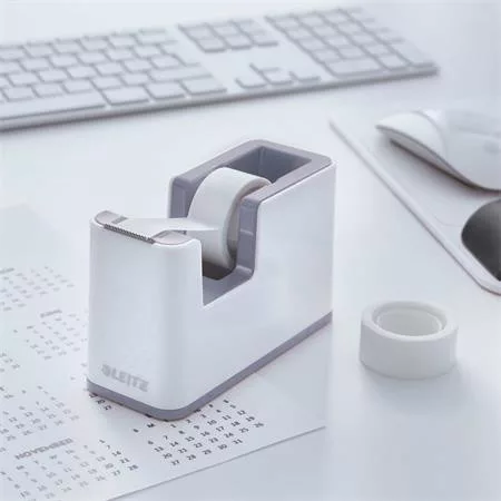 Ragasztószalag-adagoló, asztali, feltöltött, LEITZ "Wow", fehér-szürke