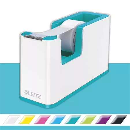 Ragasztószalag-adagoló, asztali, feltöltött, LEITZ "Wow", fehér-jégkék