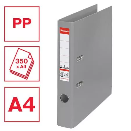 Iratrendező, 50 mm, A4, PP, élvédő sínnel, ESSELTE "Standard", szürke