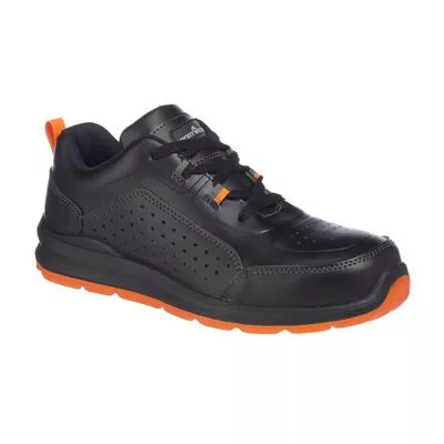 Az elegáns és kifinomult stílusú Portwest Compositelite Perforált biztonsági tréner speciálisan elhelyezett perforált paneleket tartalmaz a további légáramlás és légáteresztő képesség érdekében. A sima hasított bőr felsőrész ideális poros környezetben, és könnyen tisztítható. A könnyű, fémmentes konstrukció ezt a modellt számos iparágban tökéletessé teszi.