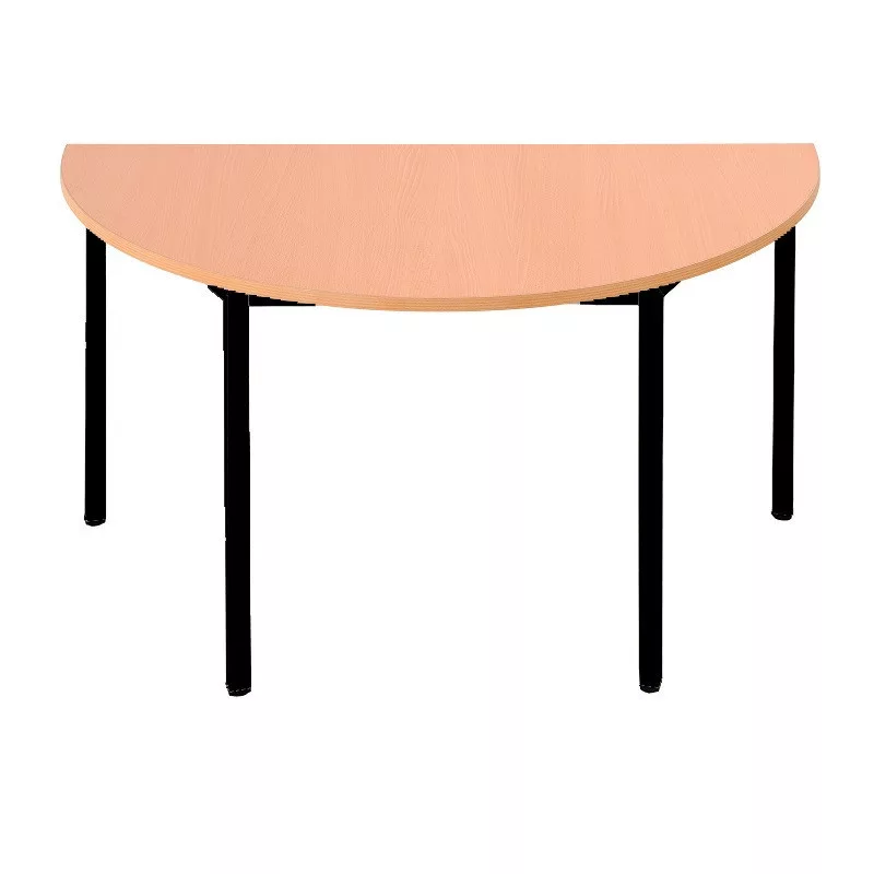 Félkör alakú asztal, kör keresztmetszetű fém lábakkal, 750mmx1400mmx700mm, Fekete/bükk