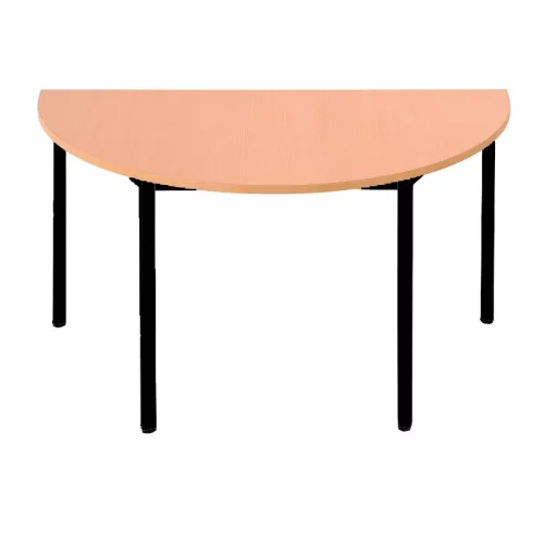Félkör alakú asztal, négyzet keresztmetszetű fém lábakkal, 750mmx1400mmx700mm, Fekete/bükk