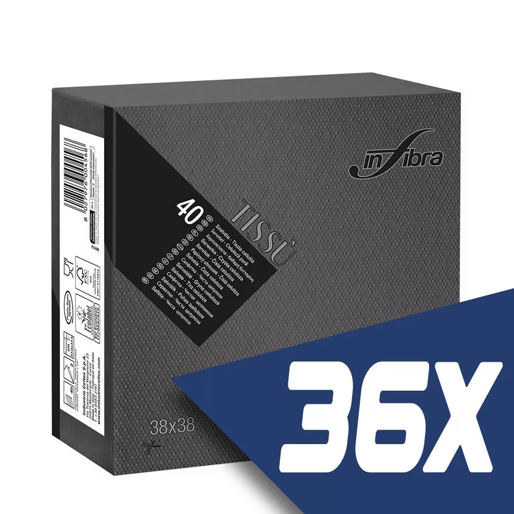 Infibra Szalvéta 38x38cm Fekete 2 réteg 40 lap/csomag (36 csomag)