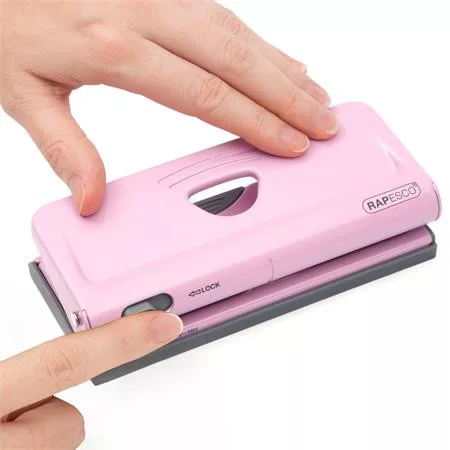 Lyukasztó, hatlyukú, 10 lap, fém, RAPESCO " New Diary 66", rózsaszín