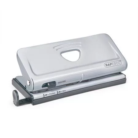 Lyukasztó, hatlyukú, 10 lap, fém, RAPESCO " New Diary 66", ezüst