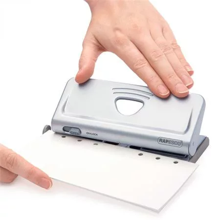 Lyukasztó, hatlyukú, 10 lap, fém, RAPESCO " New Diary 66",  ezüst