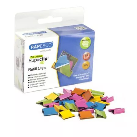 Utántöltő kapcsok, RAPESCO, "Supaclip 40", vegyes színben