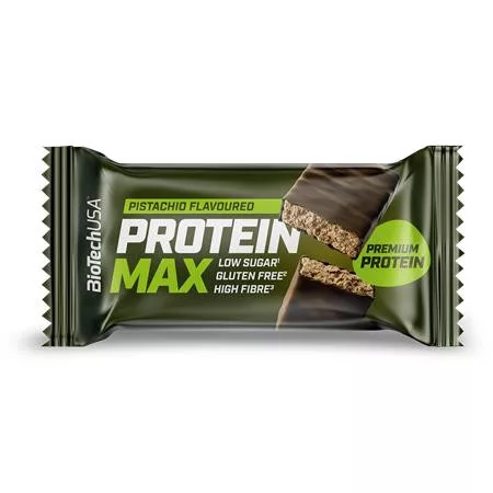 Fehérjeszelet, gluténmentes, 45g, BIOTECH USA "Protein Max", pisztácia