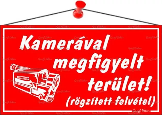 Információs tábla, 22,5x12,5 cm, "Kamerával megfigyelt terület", piros