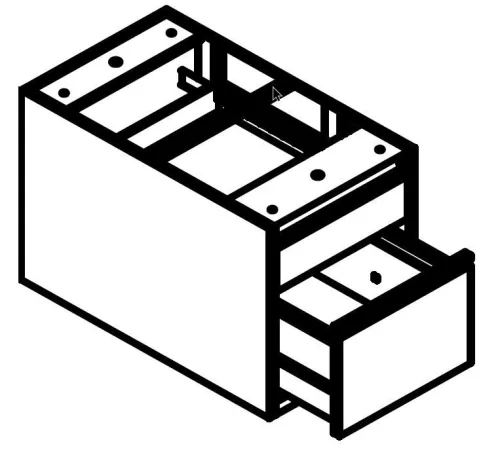 Íróasztal alá helyezhető fiókos konténer 2 fiókkal, görgők és fedlap nélkül.
