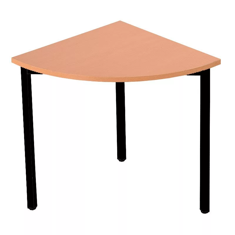 Negyedkör alakú asztal, négyzet keresztmetszetű fém lábakkal, 750mmx900mmx800mm, Fekete/bükk
