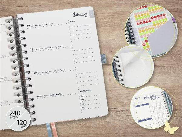 Naptár, spirál, A5, heti, 2026, kemény borító, SIGEL "Jolie", Glittery Joy