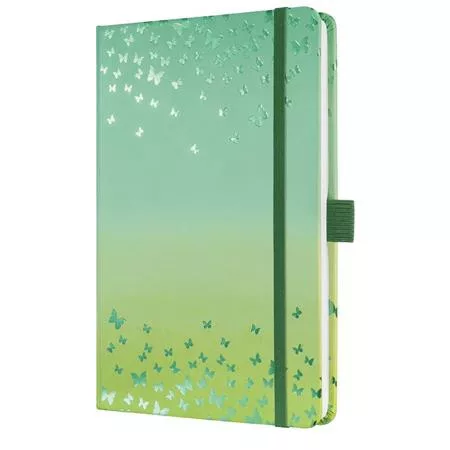 Jegyzetfüzet, exkluzív, 135x203 mm, vonalas, 87 lap, keményfedeles, SIGEL "Jolie" Butterfly Confetti, lime