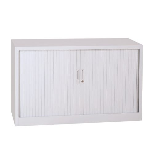 Robosztus, hegesztett acél szekrény. Könnyen futó, megerősített ajtók, speciális, halk csapágyazással. Magasságában állítható polcokkal, hengerzárral, főkulcsos opcióval.