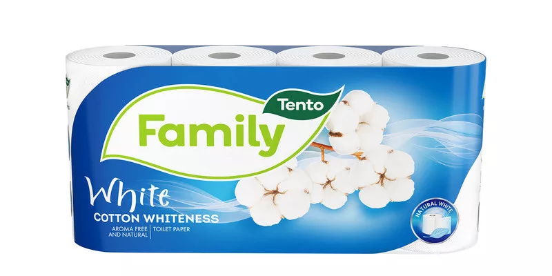 A Tento Family termékcsaládot azok számára ajánljuk, akik egyszerű, de jól használható higiéniai megoldásokat keresnek az otthonukba. A Tento Family White fehér toalettpapír (wc papír) tiszta és természetes fehérségének puha érintésének megbízhatósága és finomsága mindenkit meggyőz. PEFC- és FSC-tanúsítvánnyal rendelkezik.