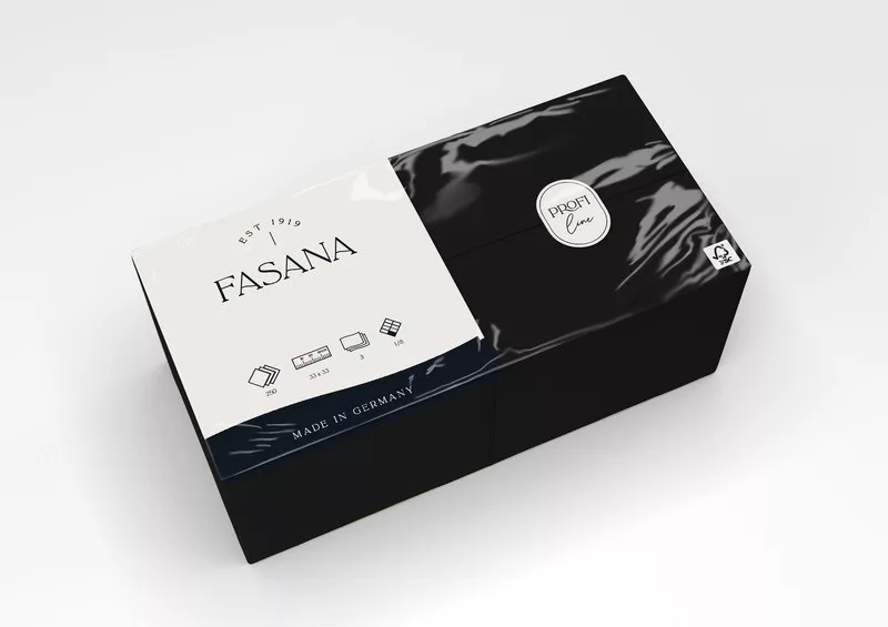 Fasana Lunch szalvéta fekete, 3 rétegű, 33x33 cm, 250 lap, 1/8 hajtott, 4 csomag/karton