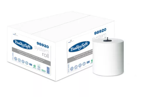 BulkySoft Advanced System laponkénti adagolású kéztörlő (MTC), 18 cm, 2 rétegű, hófehér, 150 méter/tekercs, 100% cellulóz, 6 tekercs/doboz