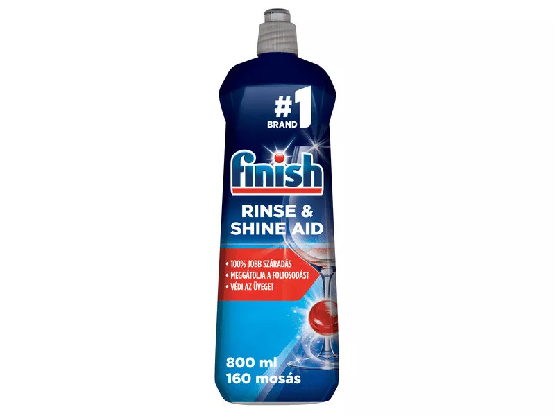 Kiegészíti a mosogatószer használatát, és megakadályozza, hogy edényein, poharain és konyhai eszközein ételmaradványok, foltok vagy bevonatok maradjanak. Próbálja ki Ön is ezt a párosítást, és meglátja, hogy az eredmény tökéletes tisztaság és fantasztikus ragyogás lesz! Egyszerűen töltse a folyadékot az öblítő adagoló rekeszbe, és az öblítőszer minden egyes mosogatáskor automatikusan kioldódik, a mosogatás öblítési fázisában. Finish öblítőszerrel 5x hatást érhet el: leöblíti a lerakódásokat, gyorsítja a száradást, foltmentes tisztaság, nincs filmréteg, csillogó ragyogás.