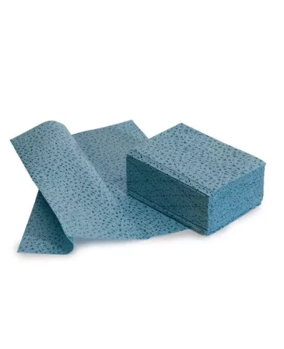 100% polipropilén, erősen nedvszívó, oldószerálló, szöszmentes íves törlőkendő univerzális használatra. A kék színnek köszönhetően a nedvesség jól látható a kendőn, kivállóan alkalmas nagy felületek gyors és szöszszegény törlésére.