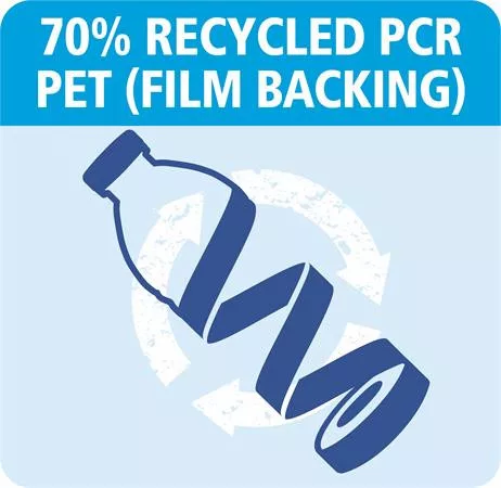70%-ban újrahasznosított PET palackból készült ragasztószalag.
