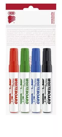 Tábla- és flipchart marker készlet, 1-3 mm, kúpos, ICO "Plan", 4 különböző szín