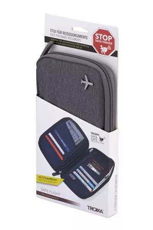 Dokumentumtároló, utazáshoz, RFID védelemmel, TROIKA "Safe flight", szürke