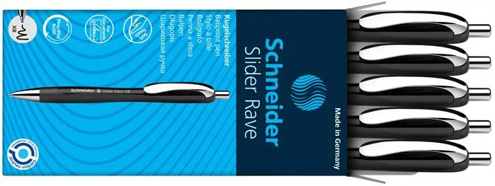 Golyóstoll, 0,7 mm, nyomógombos, SCHNEIDER "Slider Rave XB", fekete, kék