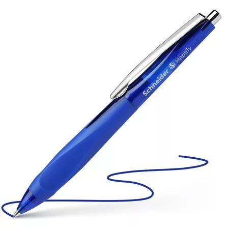 Golyóstoll, 0,5 mm, nyomógombos, sötétkék színű tolltest, SCHNEIDER "Haptify", kék