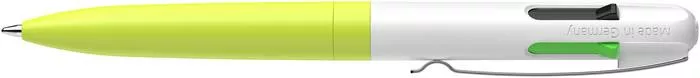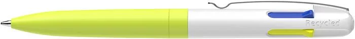 Golyóstoll négyszínű tintával iskolába, tanuláshoz és mindennapi felhasználáshoz. -tökéletes 4 az 1-ben megoldás tervezéshez, szervezéshez, strukturáláshoz -vagány, neon színű tolltest -4 színű tinta: fekete, kék, zöld és sárga -a színek gyorsan és könnyen válthatók -"Viscoglide" tinta: könnyedebb, gördülékenyebb írást biztosít -erős fémklip -92%-ban újrahasznosított műanyag tolltest -vonalvastagság: 0,5 mm