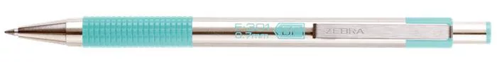 Golyóstoll, 0,24 mm, nyomógombos, rozsdamentes acél, pasztellzöld tolltest, ZEBRA "F-301", kék