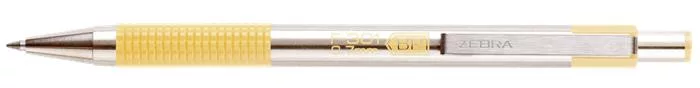 Golyóstoll, 0,24 mm, nyomógombos, rozsdamentes acél, pasztellsárga tolltest, ZEBRA "F-301", kék
